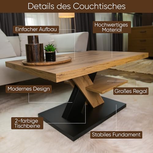 Couchtisch, Moderner Wohnzimmertisch, Modern Möbel Wohnzimmer, Kaffeetisch, Sofatisch mit Großer Ablage, Beistelltisch für Tee und Kaffee – Coffee Table for Living Room – Wotan Eiche & Schwarz