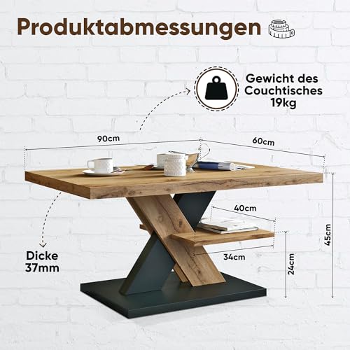 ✅ PRODUKT-MAßE UND LIEFERUNG: Dieser Couchtisch misst 90 cm x 60 cm x 45 cm (Breite, Tiefe, Höhe). Der Couchtisch wird in nicht-montiertem Zustand geliefert. Dieses Produkt ist leicht zu montieren. Eine detaillierte Montageanleitung wird mitgeliefert.