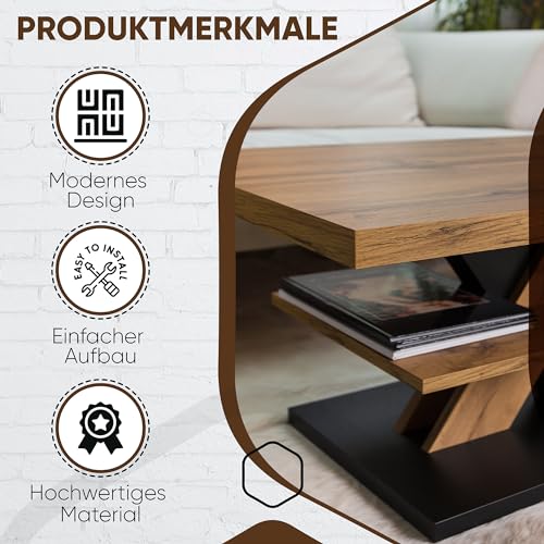 ✅ INGENEURS-QUALITÄT: Der Couchtisch verfügt über eine hochwertige Platte, die dem täglichen Gebrauch problemlos standhält und Ihre Wohnzimmereinrichtung wundervoll ergänzt. Ganz gleich, ob Sie einen Couchtisch suchen, um Ihre Getränke oder andere Gegenstände abzustellen, oder einen Beistelltisch mit Ablagefunktion, dieser Tisch hat alles, was Sie brauchen. Seine beiden robusten Beine sind aus massivem MDF gefertigt. Zwei Ablagefächer sorgen für eine attraktive Optik und Funktionalität.