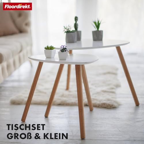 Floordirekt 2er Set Couchtisch in Weiss, Beistelltisch aus Holz, Wohnzimmertisch rund, Kleiner Sofa Kaffeetisch in modernem Design (Oregon)