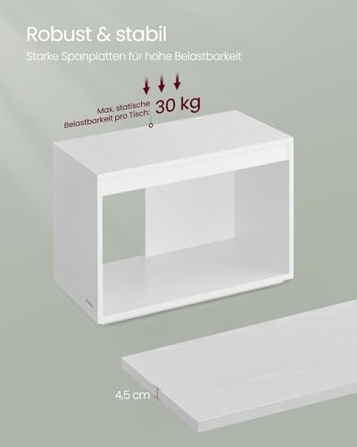 【ROBUST & STABIL】Hergestellt aus 4,6 cm dicken Spanplatten ist jeder kleine Tisch robust und stabil und trägt bis zu 30 kg. Dieser zuverlässige und langlebige Tisch wertet Ihren Wohnraum auf