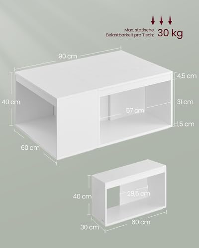 VASAGLE Couchtisch 3er Set, Beistelltisch, Kaffeetisch, Tisch mit Stauraum, anpassbar, rechteckig, modern, für Wohnzimmer, Schlafzimmer, Arbeitszimmer, schneeweiß LCT301W01