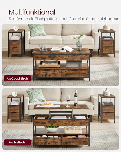 VASAGLE Couchtisch, höhenverstellbarer Wohnzimmertisch, Kaffeetisch, mit Schubladen, offenes Fach, 50 x 100 cm, vintagebraun-tintenschwarz LCT209K01