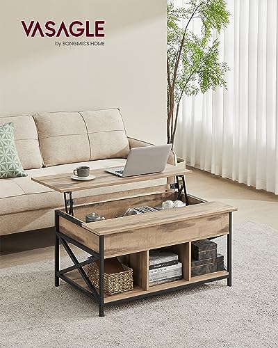 VASAGLE Couchtisch, höhenverstellbarer Wohnzimmertisch, Kaffeetisch, offener und versteckter Stauraum, X-Streben, 60 x 100 x (48-62) cm, Kamelbraun-schwarz LCT205K50