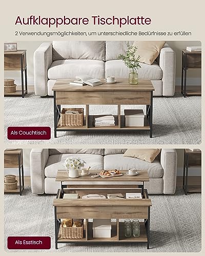 [Stabiler Halt] Dank der hochwertigen Metallscharniere und der verstärkten Querplatte hebt und senkt sich die Tischplatte dieses Wohnzimmertisches sanft und wackelfrei