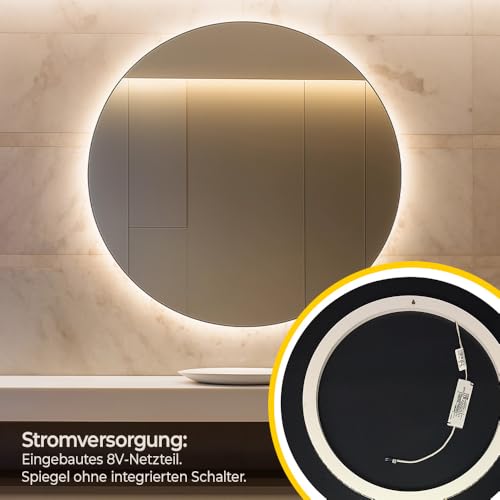 LANGLEBIGE LED-TECHNOLOGIE: Spiegel mit 60 LEDs pro Meter, geschützt durch eine Gelbeschichtung, sorgen für ein gleichmäßiges, helles Licht für bis zu 20.000 Stunden. Dieser Spoiegel ist ideal als spiegel badezimmer oder als runder spiegel im Flur.