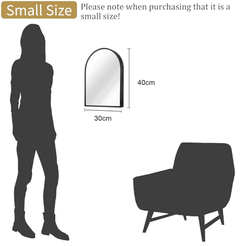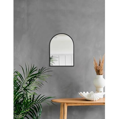 Bogen Wandspiegel Schwarz, 40×30 cm Gewölbter Tiefer Rahmen Badezimmerspiegel, Hängender Wandspiegel Spiegel mit Gebürstetes Metall Rahmen für Wohnzimmer, Schlafzimmer, Eingang