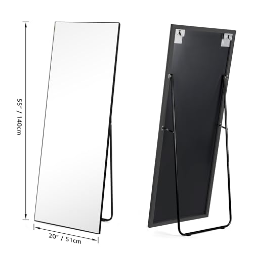 HORLIMER Ganzkörperspiegel Schwarz 140x51cm – Flexibler Standspiegel & Wandspiegel, Klare Sicht, Sicherheitsglas – Perfekt für Schlafzimmer & Ankleidezimmer