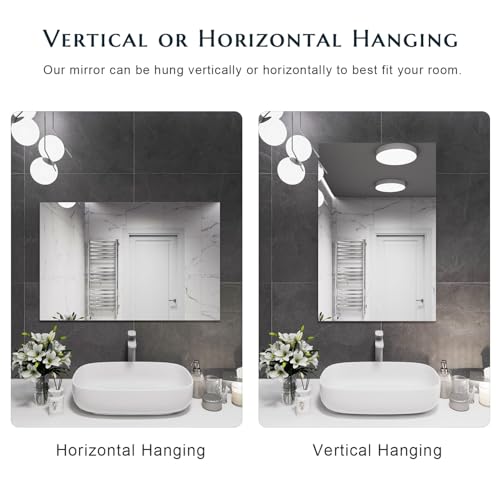 VORINSTALLIERTE HAKEN, EINFACHE INSTALLATION – Sie erhalten 1 rechteckig badezimmer spiegel mit 3 vorinstallierten Haken auf der Rückseite. Die Schrauben und die Installationsanleitung sind im Lieferumfang enthalten. Die wandspiegel können vertikal oder horizontal aufgehängt werden. Sie müssen nur 2 Löcher bohren und die Dehnschrauben anbringen und dann den Spiegel an die Schrauben hängen. In wenigen Minuten erledigt