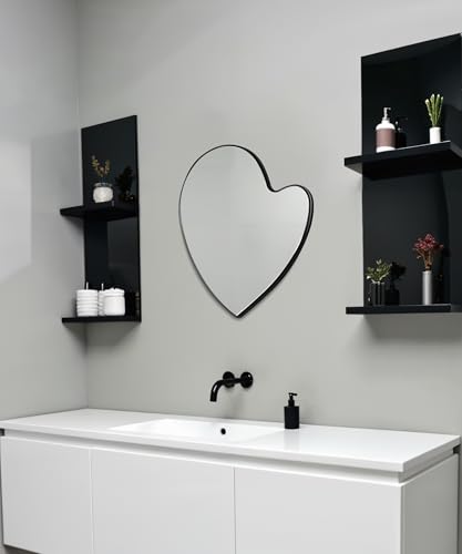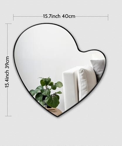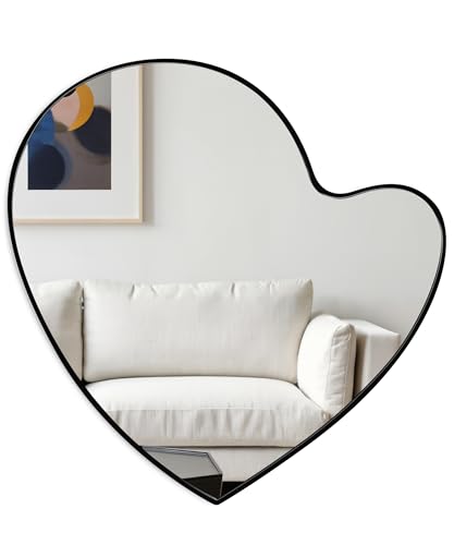 SUMGAR Wandspiegel Schwarz Herzförmig Runder Spiegel für Badezimmer Wohnzimmer Schlafzimmer Eingang Wanddekoration 39×40 cm Ästhetische Dekoration HD-Glas
