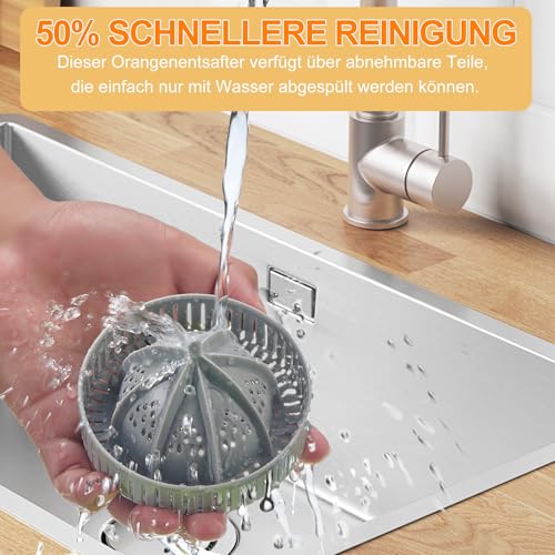 EINFACH ZU REINIGEN MIT ABNEHMBAREN TEILEN: Die Reinigung ist ein Kinderspiel mit den abnehmbaren Teilen unseres Entsafters. Spülen Sie sie einfach unter Wasser ab für eine schnelle Reinigung. Das einzigartige Design sorgt dafür, dass auch die kleinsten Teile leicht zugänglich sind, aber denken Sie daran, den Hauptkörper nicht zu waschen.