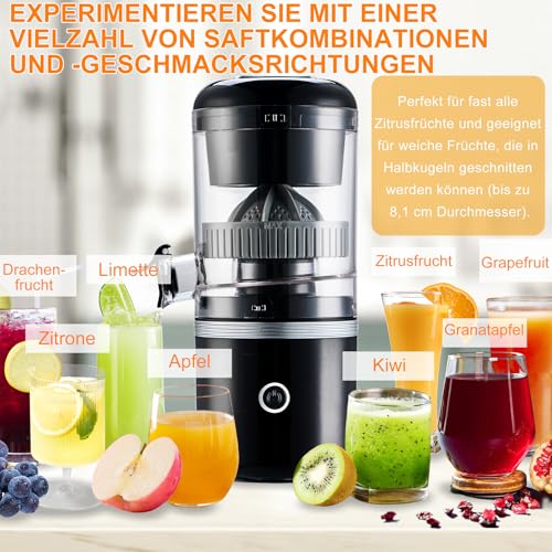 MAISON HUIS Zitruspresse Elektrisch Saftpresse Orangenpresse Zitronenpresse Tragbare USB-Aufladung Juicer Entsafter für Orange, Zitronen, Grapefruits, Zitrusfrüchte (Schwarz)