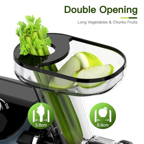 68° geneigter BIG Feed Chute: Sparen Sie Zeit mit dem großzügig gestalteten Einfülltrichter, der ein schnelles und effizientes Entsaften von Obst und Gemüse ermöglicht.