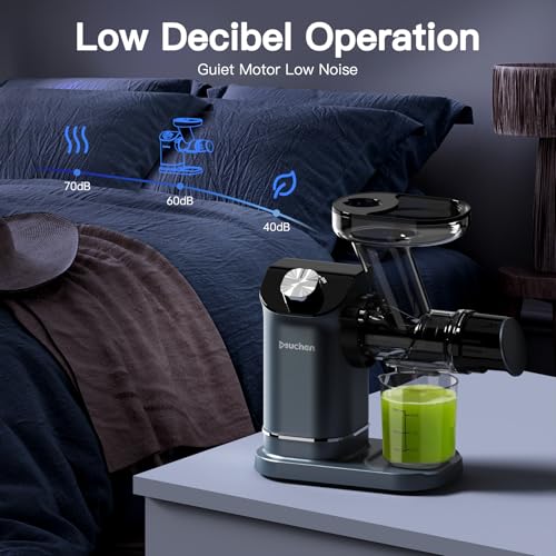 Leistungsstarker Motor: Der Muchen Entsafter verfügt über einen 150-Watt-Motor, der eine Geschwindigkeit von 90 bis 110 Umdrehungen pro Minute erreicht. Dies ermöglicht eine schonende Saftextraktion, ohne die Nährstoffe durch Wärme zu beeinträchtigen.