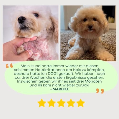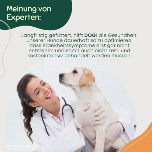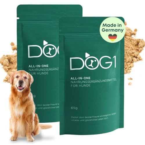 DOG1 revolutioniert die Hundeernährung, indem es zahlreiche andere Futterergänzungen überflüssig macht. Mit einer optimalen Kombination wissenschaftlich fundierter Inhaltsstoffe, wie Bierhefe Hund, Glucosamin Chondroitin hochdosiert, und Vitamin B Komplex Hund, bietet DOG1 eine einzigartige Basis für das Wohlbefinden deines geliebten Vierbeiners. Egal ob Bierhefe Pulver oder Bierhefe für Hunde, DOG1 integriert die besten Zutaten, um die Gesundheit deines Hundes zu unterstützen. DOG1 enthält alles, was dein Hund benötigt: Probiotika für Hunde zur Unterstützung der Darmgesundheit, Gelenktabletten für Hunde für gesunde Gelenke, und Superfood für Hunde zur Förderung der Vitalität. Mit nur einer Portion pro Tag versorgt DOG1 deinen Hund mit wichtigen Nährstoffen für eine ausgewogene Ernährung, starke Immunabwehr, und ein langes, gesundes Leben. Gönn deinem Hund das Beste mit DOG1, dem umfassenden Ergänzungsfuttermittel, das alles vereint: von Glucosamin Pulver Hund bis zu Vitamin B Komplex für Hunde. Halte deinen Hund gesund und glücklich mit nur einer täglichen Portion DOG1. Ideal für alle Hunde, von Welpen bis hin zu Senioren, für ein gesundes und aktives Leben. Wähle DOG1 für eine einfache und effektive Ernährungsunterstützung!