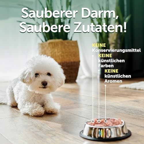 Hypoallergenes Nassfutter -Topping für empfindliche Verdauung – Allergiearme Rezeptur, ohne künstliche Zusätze. Ideal für sensible Hunde, unterstützt gesunde Verdauung & allgemeines Wohlbefinden.