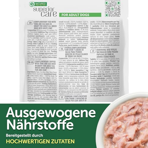 Nature’s Protection Superior Care Nassfutter für Hunde – Thunfisch & Wolfsbarsch, Proteinreich in Gravy, für Empfindliche Verdauung, Gesunde Haut & Fell. Für Aller Hunderassen Weißes Fell (24 x 70g)