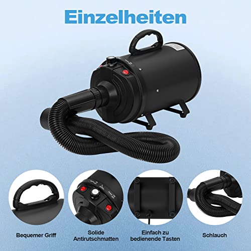 XKISS hundefön 3200W Pet Dryer Hundetrockner Blower mit Einstellbarer Windgeschwindigkeit und Temperaturen, 4 Düsen (Schwarz)