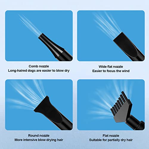 [4 DÜSEN & FLEXIBLER SPRINGSCHLAUCH] Verschiedene Düsen erfüllen die Bedürfnisse verschiedener Haustiere; der Schlauch ist verdickt, um hohen Temperaturen standzuhalten, und lang und flexibel, damit Sie Ihren Hund auch dann problemlos trocknen können, wenn er sich bei der Fellpflege herumwindet.