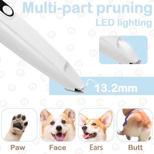 Leise Hundeschermaschine, Pfotentrimmer mit LED-Licht, USB Wiederaufladbar Wasserdicht Pfoten Rasierer, Pro Hundetrimmer, Super Quiet Painless Paw Care für Hunde