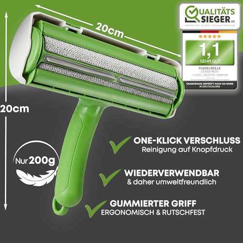 WIEDERVERWENDBAR UND UMWELTFREUNDLICH – Im Gegensatz zu herkömmlichen Fusselrollen benötigt unser DOGGYBOO Tierhaarentferner keine Nachfüllungen oder Klebestreifen. Er ist wiederverwendbar und somit eine nachhaltige Wahl für umweltbewusste Haustierbesitzer.