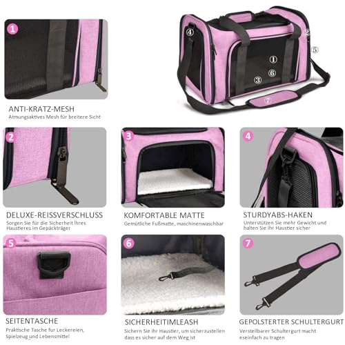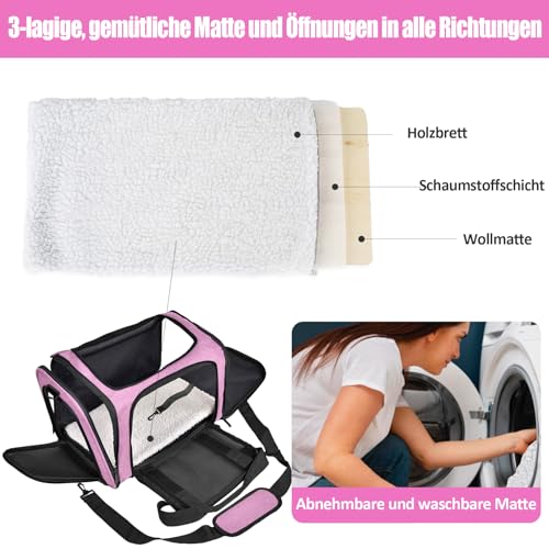 Transporttasche für Katze Hund, Hundetransportbox, Faltbare Katzentransportbox, tragbar, 5kg Katzen Hunde Tragebox, für mittelgroße Hunde, Katze (M, Rosa)