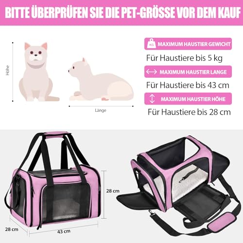 【M Größe】: Die Größe dieses Haustier Handtaschenhalters ist 43cm, 28cm, 28cm, geeignet für Kätzchen und Welpen mit Gewicht bis zu 5kg. Um lästigen Austausch zu vermeiden, stellen Sie bitte sicher, die Größe und das Gewicht des Haustiers vor dem Kauf zu messen.