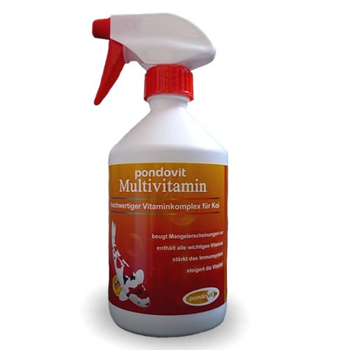 Pondovit Multivitamin ist ein speziell auf die Bedürfnisse von Koi abgestimmter Vitaminkomplex und eine optimale Ergänzung zu den meist bereits im Futter vorhandenen Vitaminen. Eine regelmäßige Anwendung sichert eine lückenlose Versorgung mit allen lebensnotwendigen Vitaminen und stärkt das Immunsystem Ihrer Fische. pondovit Multivitamin beugt Mangelerscheinungen vor und sorgt für vitale, gesunde und intensiv gefärbte Koi.