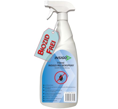 NEU Biozidfreie Milben Abwehr 750ml – Mittel für Hausstaubmilben abwehren – Milbenspray für Matratzen – Fleckenfrei – Milben Spray INSIGO