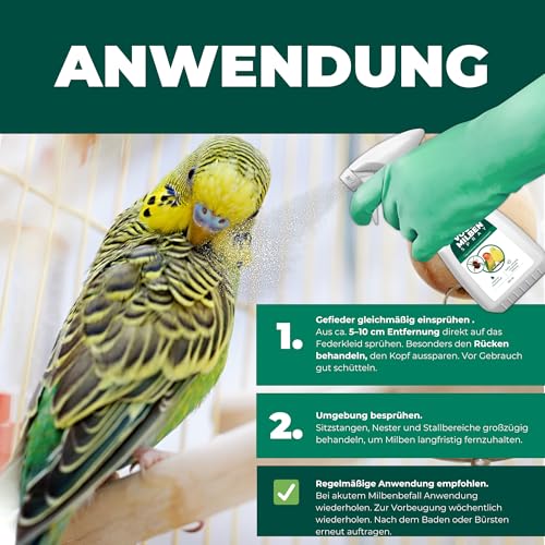 Milbenspray 250 ml, Milbenschutz für Ziervögel, Singvögel & Geflügel, für Wellensittich, Kanarienvogel, Papagei, Beo, Großsittich & Brieftaube, Gegen rote Vogelmilbe und Parasiten