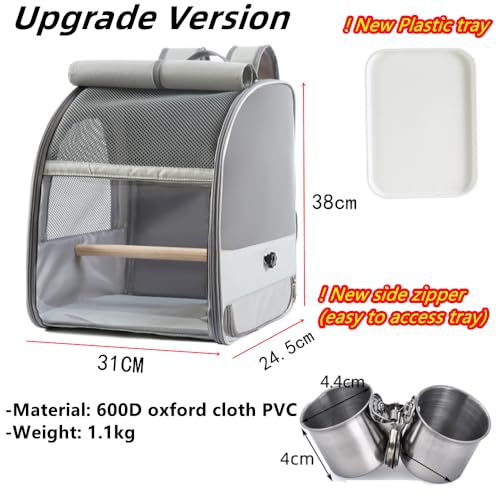 Transportbehälter für Vögel,Rucksack für Vögel mit Holzstab,Vogel transportbox,mit Edelstahl-Clip-Cups,tragbare Vogelträger Reisetasche,1 Backenzahnstein,1 Kunststoffpalette