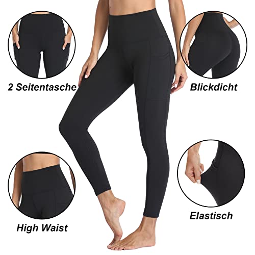 Sport Leggings Damen mit Tasche High Waist Sportleggins Lang Blickdicht Sporthose Push Up Yogahose Bauchweg Laufhose Fitnesshose Hose