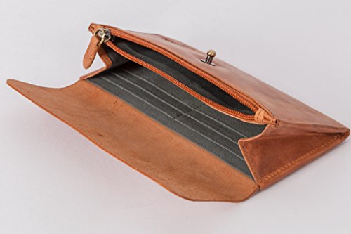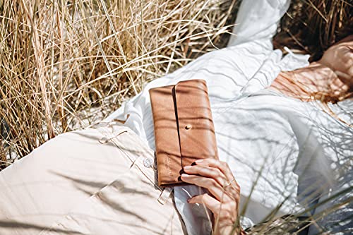 Liebenswert! Handgefertigtes Knopfportemonnaie mit Knopfverschluss – Natürlich schönes Premium Leder und ein feiner Innenstoff aus 100% Baumwolle – 6 Kartenfächer, 1 Geldscheinfach, 1 XL Münzfach, 1 Smartphone Fach