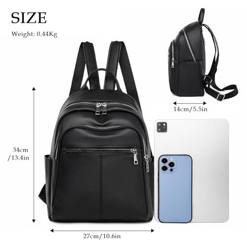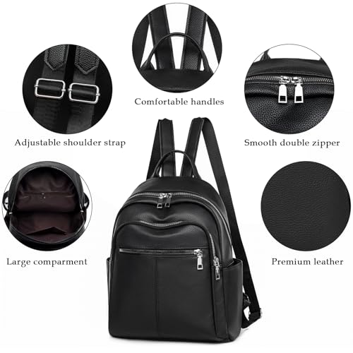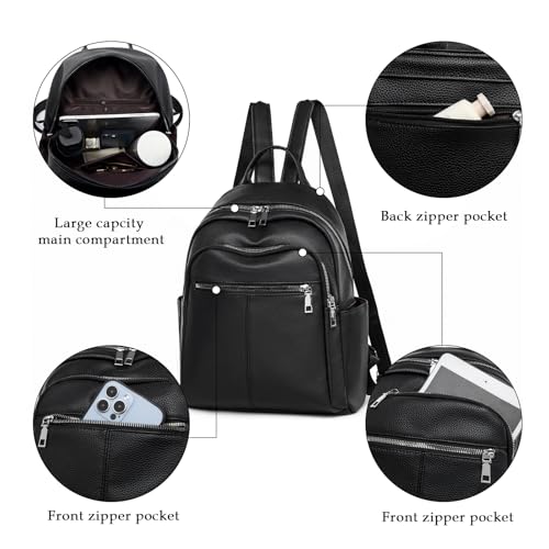 Travistar Rucksack Damen Klein Elegant Cityrucksack PU Leder Damenrucksack Wasserdicht Rucksacktasche Womens Backpack Anti Diebstahl Tagesrucksack für Reisen, Arbeit, Schule (Schwarz)