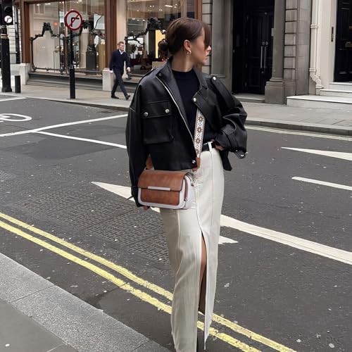【Veganes Leder】: Die Umhängetasche besteht aus veganem Leder. Leicht zu reinigen und kein seltsamer Geruch. Diese Umhängetasche mit silbernen Beschlägen sieht immer jung und modisch aus