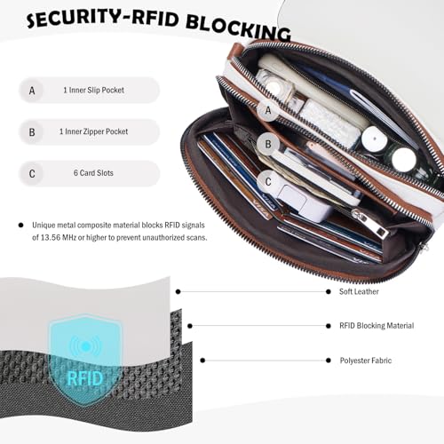 【Intelligente Konstruktion und Stil】: Das Design mehrerer Reißverschlusstaschen bietet Platz für tägliche Must Have Gegenstände. Erste Haupttasche (1 Innentasche mit Reißverschluss) ,zweite Haupttasche (6 Kartenfächer, 1 Innentasche mit Reißverschluss, 1 Innentasche mit Steckverschluss) ,1 Vordertasche. Machen Sie die Umhängetasche zu einer idealen Option für den Einsatz im Freien, perfekt für Reisepass, Taschentuch, Lippenstifte, Münzen, Karten, Schlüssel usw