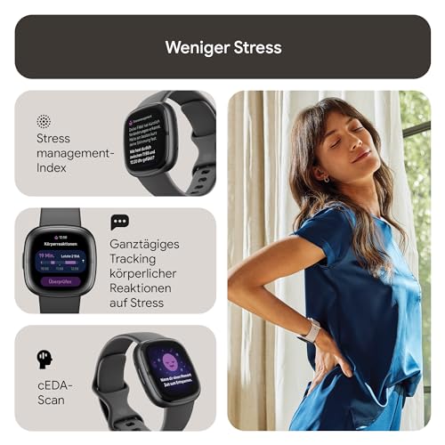 Gesünder leben: cEDA-Sensor für ganztägige Stresserkennung und Stressmanagement-Index, EKG-Funktion, SpO2, Dashboard mit Gesundheitswerten, Zyklus-Tracking, Achtsamkeitsübungen