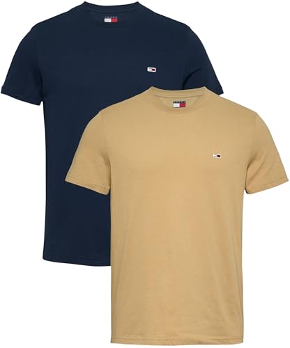 Tommy Jeans Herren TJM Xslim 2pack Jersey Tee EXT Dm0dm20687 S/S T-Shirt, Multi (Dark Night Navy/Relic Tan), XL EU