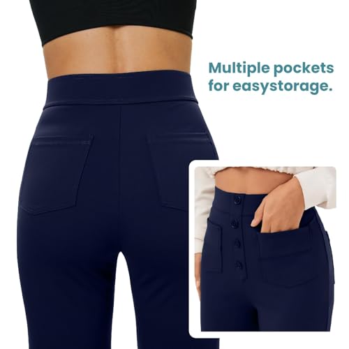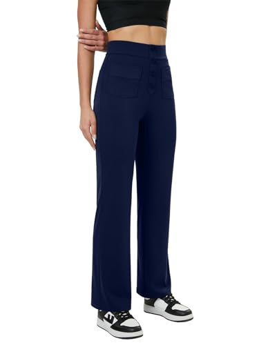 Weite Hose Damen Hohe Taille Sporthose Knopf Gerade Hosen mit Taschen Elastische Freizeithose
