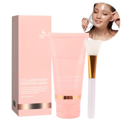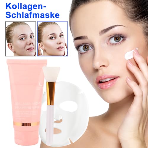 Collagen Night Wrapping Mask,Hydrolysiertes Kollagen Peel Off Gesichtsmaske für Nacht,Gesicht Collagen Maske Overnight Fördert Elastizität & Feuchtigkeit,Reduziert Erschlaffung & Mattigkeit Mask,1Stk